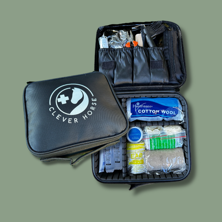 Equine emergencies can happen anywhere and at any time. Stay prepared with our Clever Horse Kits, packed full of vet-approved items for wounds, bandaging, disinfecting, and more. Each first aid kit features an array of practical tools and resources—from bandage scissors to cooling gel—housed in a machine-washable, lightweight bag. The Clever Horse Kit is ideal for the yard, tack locker, or stable, and is designed to help you manage on your own. Cope with anything from small injuries, to emergency situations until the vet arrives.